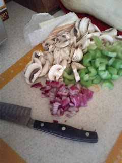 In a large saute pan, combine onion, celery, red pepper flake, and mushrooms with 2 TBS of the butter and saute until soft. Add in the additional 2 TBS of butter and melt it, then sprinkle the flour over the mixture. Stir to combine, until you can no longer see flour. Pour in the milk, bring the heat up to high for about 2 minutes and stir contantly. Reduce heat to medium and stir in mayo until all lumps are smoothed out. Fold in the crab and shrimp. Stir to combine thoroughly, then pour the mixture into the rice lined casserole dish. Bake at 300 degrees for 30 minutes.